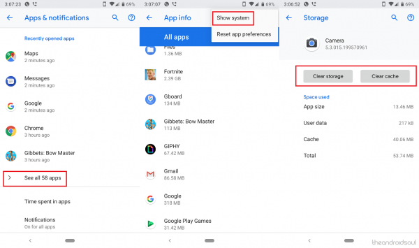 When you come across the same issue without any update then it’s better to clear the camera cache. For this, go to Settings > Apps > find Camera app from list. After that, choose Camera and click on “Clear Cache” option. Doing this will clear out junk files of camera app and hopefully, your phone’s camera will work now.